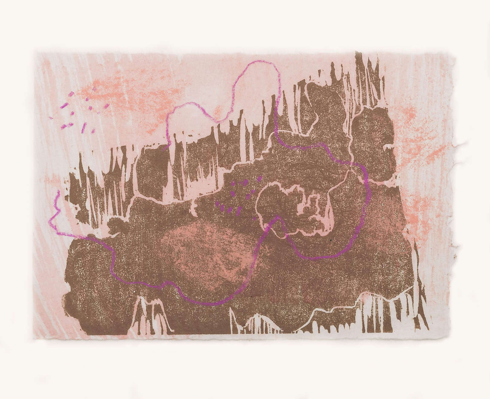Edge-to-edge woodcut and screenprint with pastel, on 70gsm Bunkoshi Japanese handmade paper, variable edition of 20, 145mm x 170mm